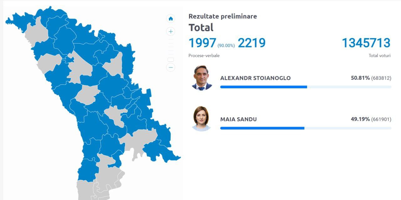 📊 Санду стремительно догоняет Стояногло на выборах президента Молдовы