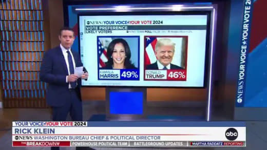 2. Камала Харрис лидирует на 3% в общенациональном опросе избирателей. 49% избирателей готовы голосовать за Харрис, 46% за Дональда Трампа.