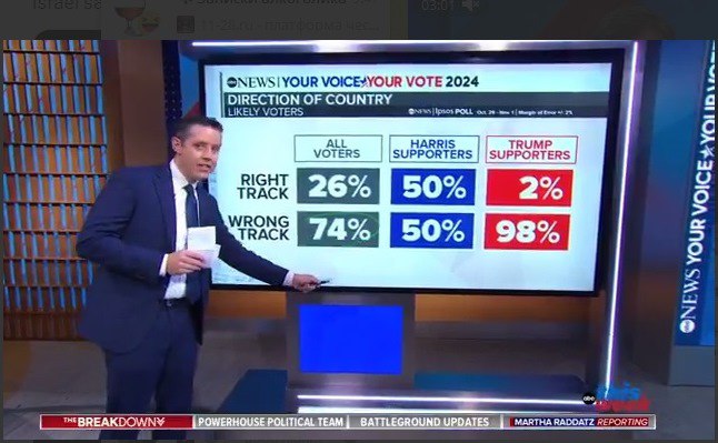 1. Более 74% избирателей считают, что страна находится на неверном пути.