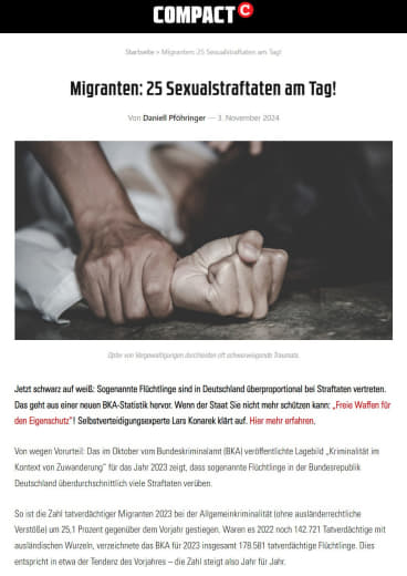 Большинство подозреваемых — выходцы из Сирии, Афганистана, Ирака и Украины. Наибольшую долю мигрантов–преступников в 2023 году составили украинцы (33,1%, большинство беженцев в стране) — сообщает Compact со ссылкой на доклад BKA.