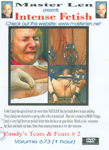 Описание: Cottn Candy has agreed to test her worst fears NEEDLES! See her break down in tears and beg. Pussy clamps are attached to a spring cable with a 4-pound pull. Then she is treated to HIGH Voltage. Candy's very limits are pushed further than she has ever gone before. Watch as she overcomes her fears and sheds real tears. Share these amazing moments in her after interview.