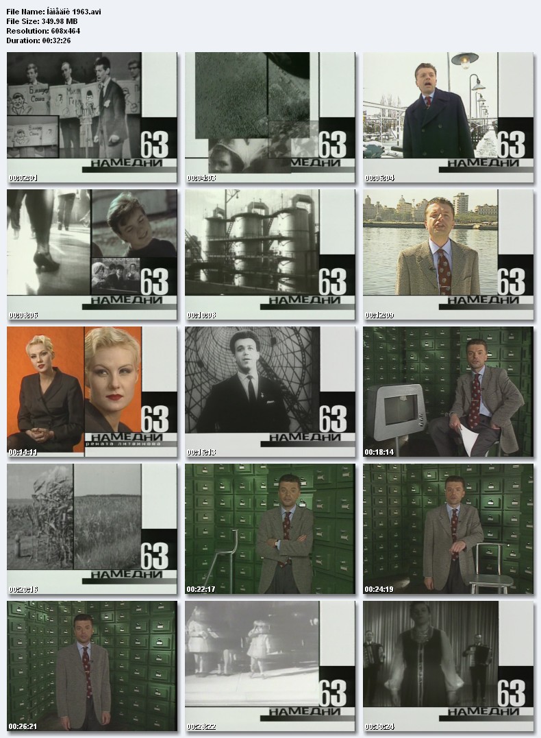 Намедни-1963.Убийство Джона Кеннеди, нефтепровод «Дружба», охлаждение советско-китайских отношений, модный танец твист, Валентина Терешкова - первая женщина в космосе, Феллини - гран-при на Московском кинофестивале, закупки зерна за границей, Лев Яшин - лучший вратарь мира Размер 349.98 Mb  Вам необходимо ЗАРЕГИСТРИРОВАТЬСЯ НА ФОРУМЕ, чтобы скачать файл.