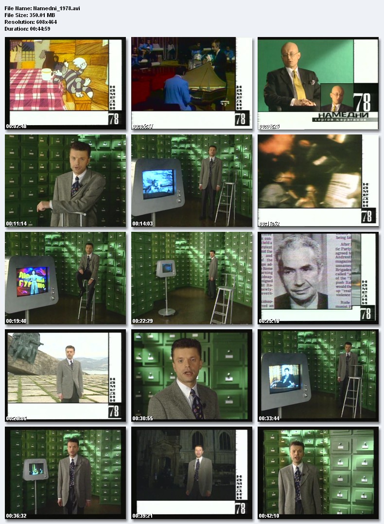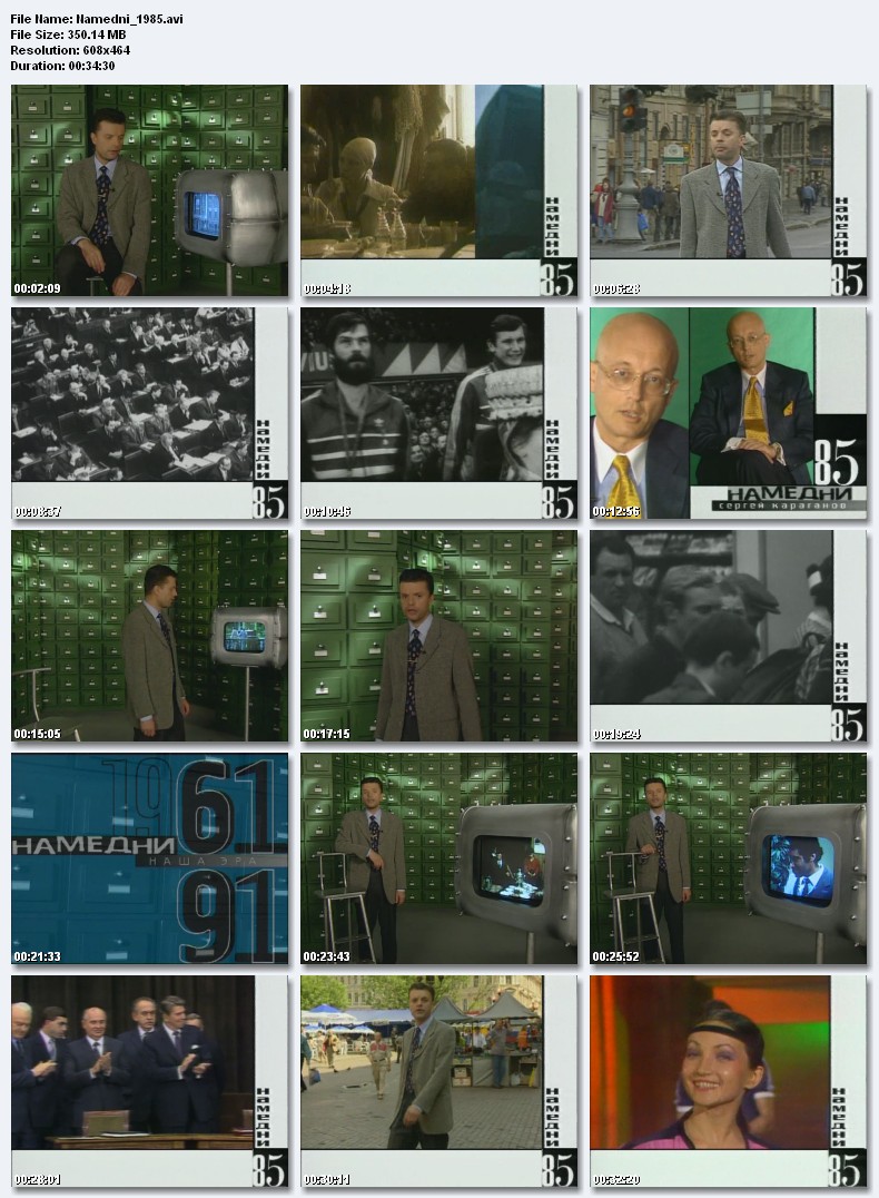 Намедни-1985.Смерть Черненко, бойня на стадионе в Брюсселе и пожар на стадионе в Брэдфорде, памятник Ленину на Октябрьской площади в Москве, Сергей Бубка - 6 метров, борьба с пьянством, покушение на «Данаю» в Эрмитаже, первые советские компьютеры, Каспаров - чемпион мира, программа СОИ - «звездные войны», фестиваль молодежи и студентов в Москве, нашли «Титаник», мода на аэробику, открылся после реставрации Старый Арбат, каунасский «Жальгирис» - чемпион СССР по баскетболу, самолет АН-124 «Руслан». Размер 350.14 Mb  Вам необходимо ЗАРЕГИСТРИРОВАТЬСЯ НА ФОРУМЕ, чтобы скачать файл.