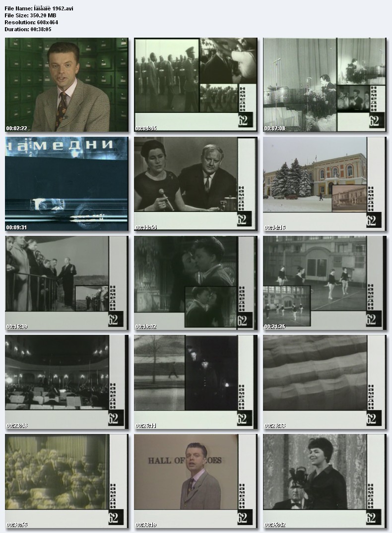 Намедни-1962.Волнения в Новочеркасске, Нона Гаприндашвили - чемпионка мира по шахматам, анекдоты про поручика Ржевского, Александр Солженицын - «Один день Ивана Денисовича», Карибский кризис, обруч хула-хуп, радиостанция «Юность», Муслим Магомаев, праздничные «Огоньки» на ТВ, Эдита Пьеха и Майя Кристалинская. Размер 350.2 Mb  Вам необходимо ЗАРЕГИСТРИРОВАТЬСЯ НА ФОРУМЕ, чтобы скачать файл.
