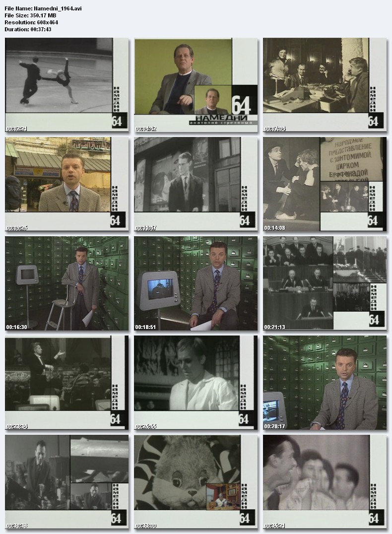 Намедни-1964.Отставка Хрущева, дружественная капстрана Финляндия, мода на искусственный мех, фигуристы Белоусова и Протопопов, Театр на Таганке, фильм «Я шагаю по Москве», песни Александры Пахмутовой, гастроли Ла Скала в Москве, «Спокойной ночи, малыши!», Булат Окуджава, Иннокентий Смоктуновский. Размер 350.17 Mb Вам необходимо ЗАРЕГИСТРИРОВАТЬСЯ НА ФОРУМЕ, чтобы скачать файл.