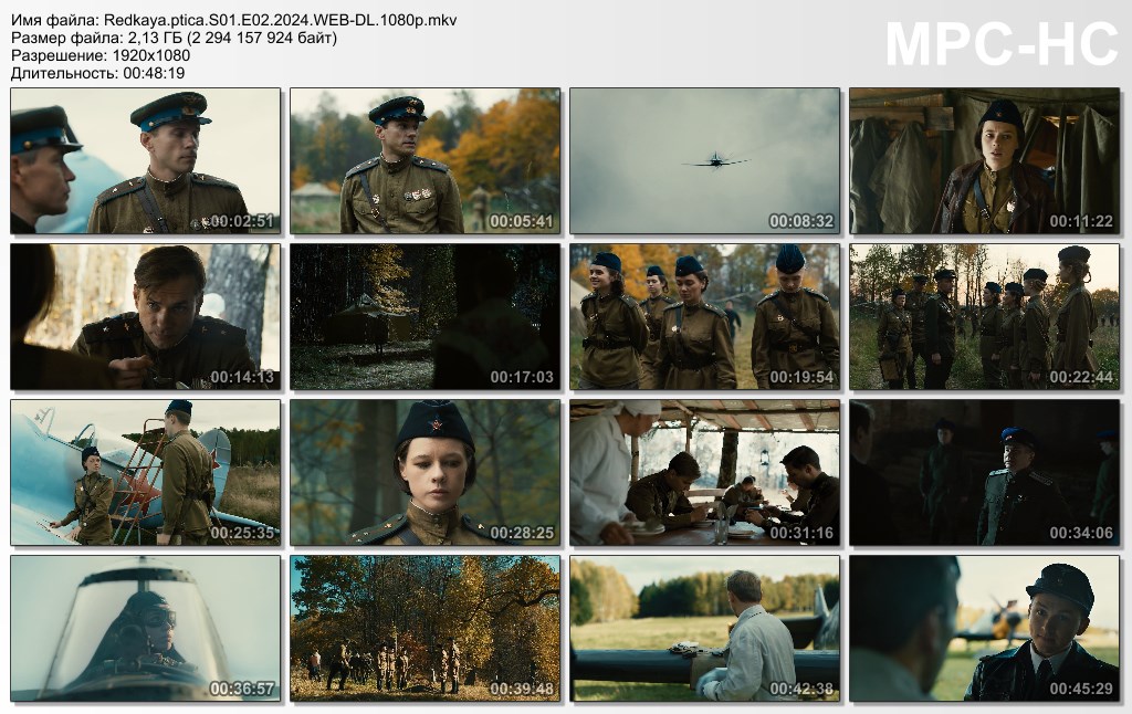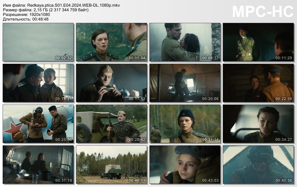 Редкая птица (2024) WEB-DL 1080p Информация о фильме: Оригинальное название фильма:Редкая птица Год выпуска:2024 Жанр:Военный, мелодрама Режиссер:Ольга Музалева В ролях:Катерина Шпица, Александр Горбатов, Екатерина Чаннова, Александра Соловьева, Евгения Лезгинцева, Анастасия Цибизова, Сергей Пускепалис, Михаил Тройник, Кирилл Гребенщиков, Дмитрий Муляр, Кирилл Запорожский, Алексей Коряков, Евгений Кошелев, Ирина Латушко, Василиса Немцова, Егор Горин, Максим Севриновский, Сергей Грузинов, Николай Сердцев, Наталья Батрак, Елена Ворончихина, Кирилл Гончаров, Никита Патуев, Алексей Весёлкин, Артем Шевченко, Илларион Маров, Владислав Кулыгин О фильме: 1943 год. Анна Петрова — боевая лётчица, которая получила тяжёлую травму. Она вернулась в тыл и работает ведущим инженером на авиационном заводе, где готовят к испытаниям новые самолеты «Кречеты». Руководство завода, не зная о последствиях её травмы, поручает Анне вместе с майором Зотовым перегнать опытный образец «Кречета» на фронт. Кроме желания одержать победу над врагом и вернуться домой с победой, Анна преследует и личную цель. Она настроена поквитаться с майором Бриггелем — немецким лётчиком, из-за которого погиб её возлюбленный. Выпущено:Россия / ХитФильм Продакшн, МТС Медиа Продолжительность серии: ~ 00:45:00 Озвучивание:Оригинальное [БЕЗ РЕКЛАМЫ!]Качество:WEB-DL 1080p Формат:MKV (x264) Видео:MPEG-4 AVC, ~ 6144 Кбит/с, 1920x1080 Звук:AC3, 2 ch, 256 Кбит/с Субтитры:Отсутствуют Размер серии:~ 2,2Гб СКАЧАТЬ 1 СЕРИЯ: Вам необходимо ЗАРЕГИСТРИРОВАТЬСЯ НА ФОРУМЕ, чтобы скачать файл.