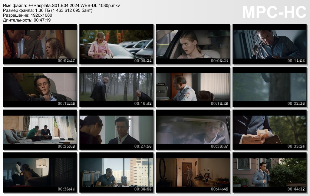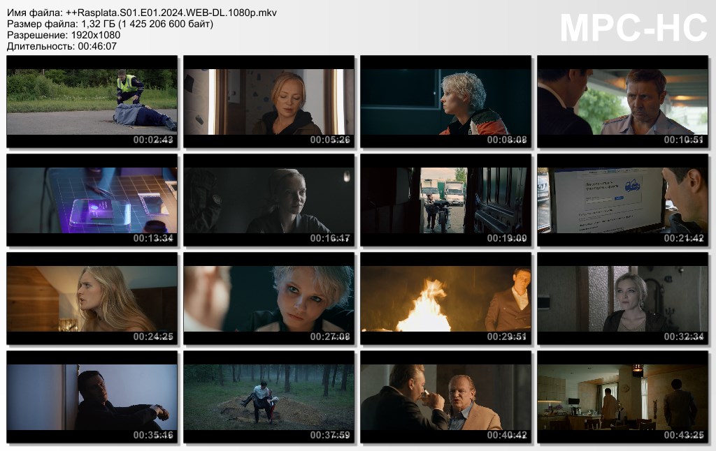 Расплата (2024) WEB-DL 1080p8 СЕРИЙ Информация о фильме: Оригинальное название фильма:Расплата Год выпуска:2024 Жанр:Драма, криминал Режиссер:Артём Мазунов В ролях:Леонид Бичевин, Джульетта Геринг, Анатолий Кот, Сергей Юшкевич, Игорь Жижикин, Владислав Котлярский, Шамиль Мухамедов, Николай Алипа, Эрика Булатая, Алёна Олькина, Роман Борзовский, Елена Лагута, Николай Сахаров, Анастасия Кувшинова, Николай Кисличенко, Роман Ленков О фильме: Александра Юматова можно назвать современным «решалой». Но, кроме решения непубличных трудностей публичных персон, он должен разбираться и в проблемах своей полукриминальной семьи. Юматову предстоит стать сообщником собственной матери, только что вернувшейся из тюрьмы за убийство из мести. Много лет назад неизвестные безжалостно расстреляли ее отца Выпущено:Россия / Wink, АКЦЕПТ Продолжительность серии: ~ 00:47:00 Озвучивание:Оригинальное [БЕЗ РЕКЛАМЫ!]Качество:WEB-DL 1080p Формат:MKV (x264) Видео:MPEG-4 AVC, ~ 4000 Кбит/с, 1920x1080 Звук:AC3, 2 ch, 192 Кбит/с Субтитры:Отсутствуют Размер серии:~ 1,3Гб СКАЧАТЬ 1 СЕРИЯ: Вам необходимо ЗАРЕГИСТРИРОВАТЬСЯ НА ФОРУМЕ, чтобы скачать файл.