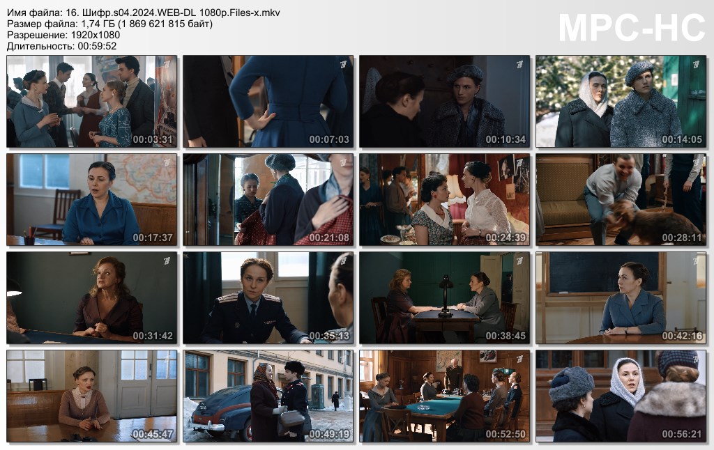 Шифр 4 СЕЗОН (2024) WEB-DL 1080p Информация о фильме: Оригинальное название фильма:Шифр 4 СЕЗОН Год выпуска:2024 Жанр:Детектив, история Режиссер:Вера Сторожева В ролях:Марьяна Спивак, Екатерина Вилкова, Елена Панова, Яна Осипова, Сергей Пускепалис, Виталия Корниенко, Сергей Медведев (III), Максим Стоянов, Иван Шибанов, Светлана Колпакова, Сергей Попов, Николай Токарев, Семён Шкаликов, Дарья Мингазетдинова, Ксения Попович, Екатерина Вуличенко, Максим Битюков, Наталья Суркова, Анастасия Великородная, Светлана Тома, Любовь Руднева, Татьяна Яхина, Анна Королёва (II), Марина Хейстонен, Егор Кутенков, Татьяна Полонская, Илья Малаков, Михаил Крылов О фильме: Подруги, которых связывает военное прошлое: работа в спецотделе ГРУ, продолжают вести расследования и помогать следственным органам в особо запутанных делах. На этот раз Ирина и Катерина отправляются в Кавминводы, куда приглашает их Анна. Она вместе с Проскуриным планирует сыграть свадьбу и отдохнуть. В Пятигорске Анна встречает своего боевого товарища, Михеева, который обращается к ней за помощью в разгадке немецкого шифра. Вскоре Михеева убивают, а девушкам и Константину Ивановичу приходится начать расследование – первое в череде очередных сложных и опасных дел. Личная жизнь подруг не менее увлекательна. На курорте Ирина, находящаяся в стадии развода, знакомится с музыкантом Евгением, и завязавшийся роман становится для неё гораздо большим, чем простой курортной интрижкой. Катерина вынуждена соседствовать с Машей и Толей - бывшей женщиной и сыном Григория. Мать Григория благоволит к Маше и внуку, и Катерина перестаёт чувствовать себя хозяйкой в собственном доме. В Москву возвращается Соня, которая не представляет жизни без любимой работы в МУРе. А над безоблачным счастьем Проскурина и Анны сгущаются тучи… Выпущено:Россия / Sony Pictures Television, «Леан-М», Продюсерское объединение «Победа» Продолжительность серии: ~ 00:50:00 Озвучивание:Оригинальное [БЕЗ РЕКЛАМЫ!]Качество:WEB-DL 1080p Формат:MKV (x264) Видео:MPEG-4 AVC, ~ 3200 Кбит/с, 1920x1080, 25 кадр/с Аудио: AC3, 2 ch, 192 Кбит/с RUS Субтитры: Русские (SDH) Для слабослышащих Размер серии:~ 1-2Гб СКАЧАТЬ 1 СЕРИЯ: Вам необходимо ЗАРЕГИСТРИРОВАТЬСЯ НА ФОРУМЕ, чтобы скачать файл.
