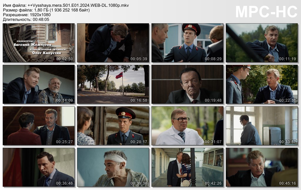 Высшая мера (2024) WEB-DL 1080p12 СЕРИЙ Информация о фильме: Оригинальное название фильма:Высшая мера Год выпуска:2024 Жанр:Детектив, история, криминал Режиссер:Вячеслав Рогожкин В ролях:Александр Бухаров, Никита Тезин, Светлана Антонова, Юрий Шлыков, Игорь Ливанов, Валентин Смирнитский, Александр Коршунов, Владимир Новиков, Владимир Гусев (II), Александр Андриенко, Игорь Хрипунов, Сергей Генкин, Юрий Круглов, Наталья Высочанская, Людмила Полякова О фильме: Ярославль, 1974 год. В городе происходят два резонансных дела: сначала шилом в ухо убивают вора-рецидивиста Лукина по прозвищу Бурелом, а затем психически больной физик Калёнов отрезает голову соседке и приносит её в милицию. За расследование дел берётся следователь по особо важным делам Егор Таболин. Он убеждён, что дважды Герой Советского Союза лётчик Тимофей Кретов, ранее признавшийся в убийстве Лукина, невиновен, да и женщина была убита явно неслучайно. Таболин понимает, что оба преступления связаны невидимой нитью, которая ведёт в местную психиатрическую больницу, которой руководят главврач Михаил Нагорных и его заместитель Виктор Ваганов. Теперь главная задача следователя не только разобраться в этих запутанных делах и понять, какое отношение к преступлениям имеет руководство больницы, но и поймать неуловимого убийцу и добиться высшей меры наказания для виновных. Выпущено:Россия / Студия: Телеостров Продолжительность серии: ~ 00:48:00 Озвучивание:Оригинальное [БЕЗ РЕКЛАМЫ!]Качество:WEB-DL 1080p Формат:MKV (x264) Видео:MPEG-4 AVC, ~ 5120 Кбит/с, 1920x1080, 25 кадр/с Звук:AC3, 2 ch, 256 Кбит/с (с цензурой) RUS Субтитры:Русские Размер серии:~ 1,8Гб СКАЧАТЬ 1 СЕРИЯ: Вам необходимо ЗАРЕГИСТРИРОВАТЬСЯ НА ФОРУМЕ, чтобы скачать файл.