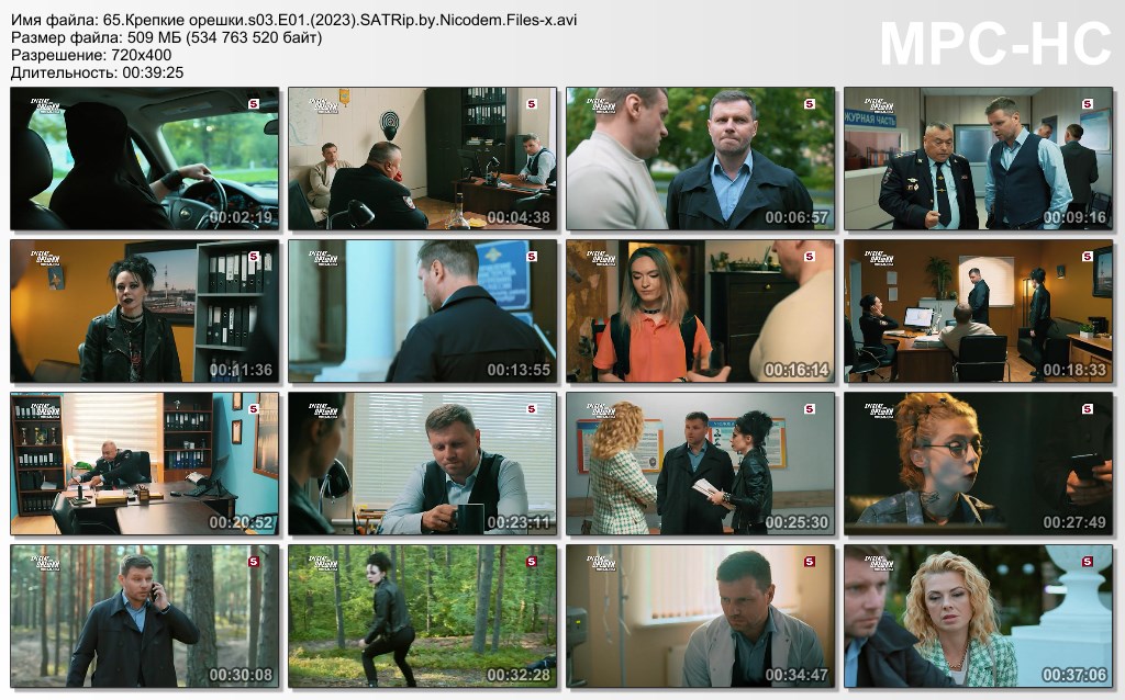Крепкие орешки / 3 СЕЗОН (2023) SATRip32 СЕРИИ Информация о фильме: Оригинальное название фильма:Крепкие орешки / 3 СЕЗОН Год выпуска:2023 Жанр:Детектив, криминал Режиссер:Дмитрий Аверин (II) В ролях:Филипп Азаров, Борис Бедросов, Гавриил Федотов, Станислав Ткаченко, Олег Метелев, Наталья Рогова, Евгений Тымченко, Владимир Марьянов, Лайла Фахр, Николай Яковлев (III), Кристина Юдичева, Глафира Козулина, Антон Заичкин, Роман Мамонтов О фильме: В управлении полиции по Комендатскому району произошли кадровые изменения. Сюда из Купчинского управления переводят дерзкого капитана Виктора Ульянова и московского мажора капитана Олега Орлова. После их появления в отделе началось негласное соревнование между "старичками" и "молодыми" за раскрываемость дел и похвалу от начальства. Опыт столкнулся с прытью. Остроты сюжету добавляет и то, что новые сотрудники отдела – Орлов и Ульянов – такие же противоположности друг друга, как Лавров и Романов. Для Ульянова важно быстро получить результат, а цель всегда оправдывает средства. Орлов – сын высокопоставленного московского чиновника, но своим происхождением не кичится и старается это скрывать. Он и в Петербург-то переехал из столицы только для того, чтобы доказать себе и своему отцу, что он может всего добиться сам. Напарники встретили "золотого мальчика" без особой симпатии... Выпущено:Россия, Триикс Медиа Продолжительность серии: ~ 00:40:00 Озвучивание:Оригинальное [БЕЗ РЕКЛАМЫ!]Качество:SATRip Формат:Avi Видео:MPEG-4, ~ 1700 Кбит/с, 720x400, 25 кадр/с Аудио:AAC, 2 ch, 192 Кбит/с Субтитры:Отсутствуют Размер серии:~ 500мб СКАЧАТЬ 1 СЕРИЯ: Вам необходимо ЗАРЕГИСТРИРОВАТЬСЯ НА ФОРУМЕ, чтобы скачать файл.