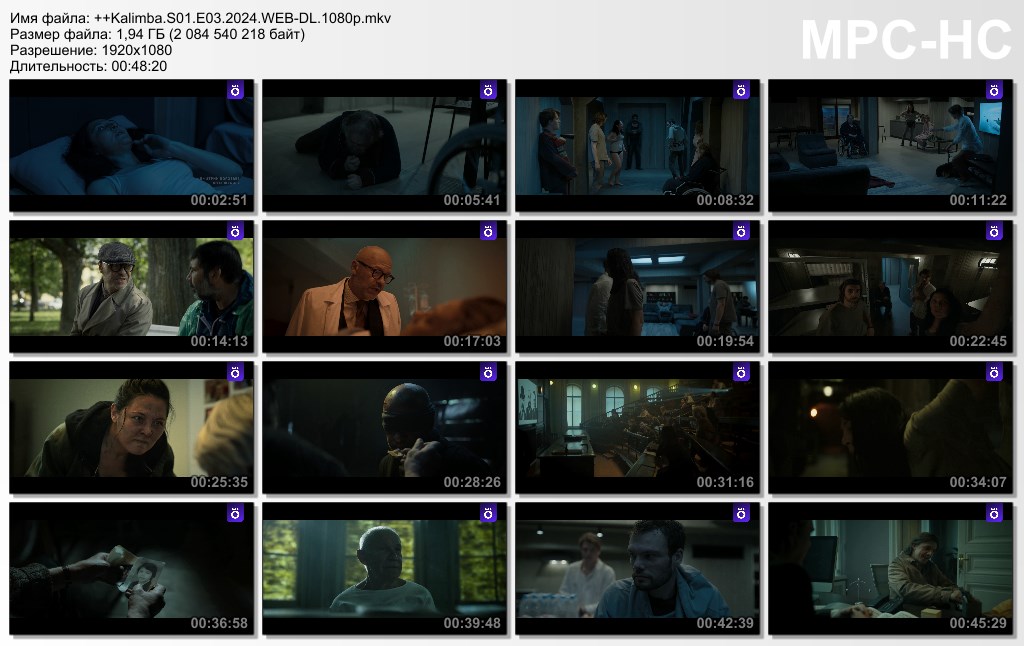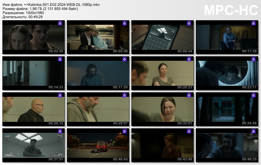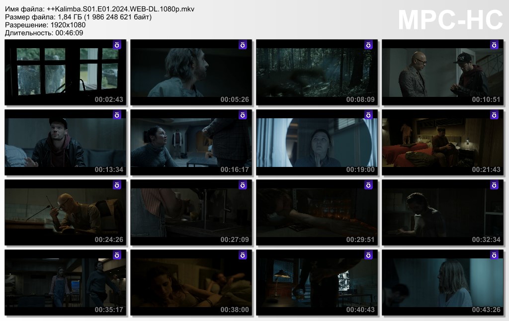 Калимба (2024) WEB-DL 1080p8 СЕРИЙ Информация о фильме: Оригинальное название фильма:Калимба Год выпуска:2024 Жанр:Драма, детектив Режиссер:Нурбек Эген В ролях:Фёдор Бондарчук, Алёна Михайлова, Сергей Гармаш, Пётр Скворцов, Елизавета Шакира, Сергей Горошко, Константин Плотников (II), Юлия Волкова, Сергей Городничий, София Сучкова, Михаил Хмуров, Камилла Келлер, Тимофей Ольков, Людмила Юлова, Елена Радевич, Ева Уильямс, Никита Брусов, Степан Пивкин О фильме: Амбициозный профессор психиатрии Виктор Мещерский проводит опасный психологический эксперимент, в рамках которого под ложным предлогом запирает в подвале жертв и их обидчиков, скрывая свои истинные цели. Последующее расследование расскажет о настоящих мотивах профессора, и свяжет воедино запутанные истории всех участников жестокого эксперимента. Выпущено:Россия / Okko, Норм Продакшн Продолжительность серии: ~ 00:47:00 Озвучивание:Оригинальное [БЕЗ РЕКЛАМЫ!]Качество:WEB-DL 1080p Формат:MKV (x264) Видео:MPEG-4 AVC, ~ 5000 Кбит/с, 1920x1080 Звук:Русский (AC3, 6 ch, 384 Кбит/с), (E-AC3, 6 ch, 384 Кбит/с) Субтитры:Отсутствуют Размер серии:~ 1,9Гб СКАЧАТЬ 1 СЕРИЯ: Вам необходимо ЗАРЕГИСТРИРОВАТЬСЯ НА ФОРУМЕ, чтобы скачать файл.