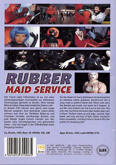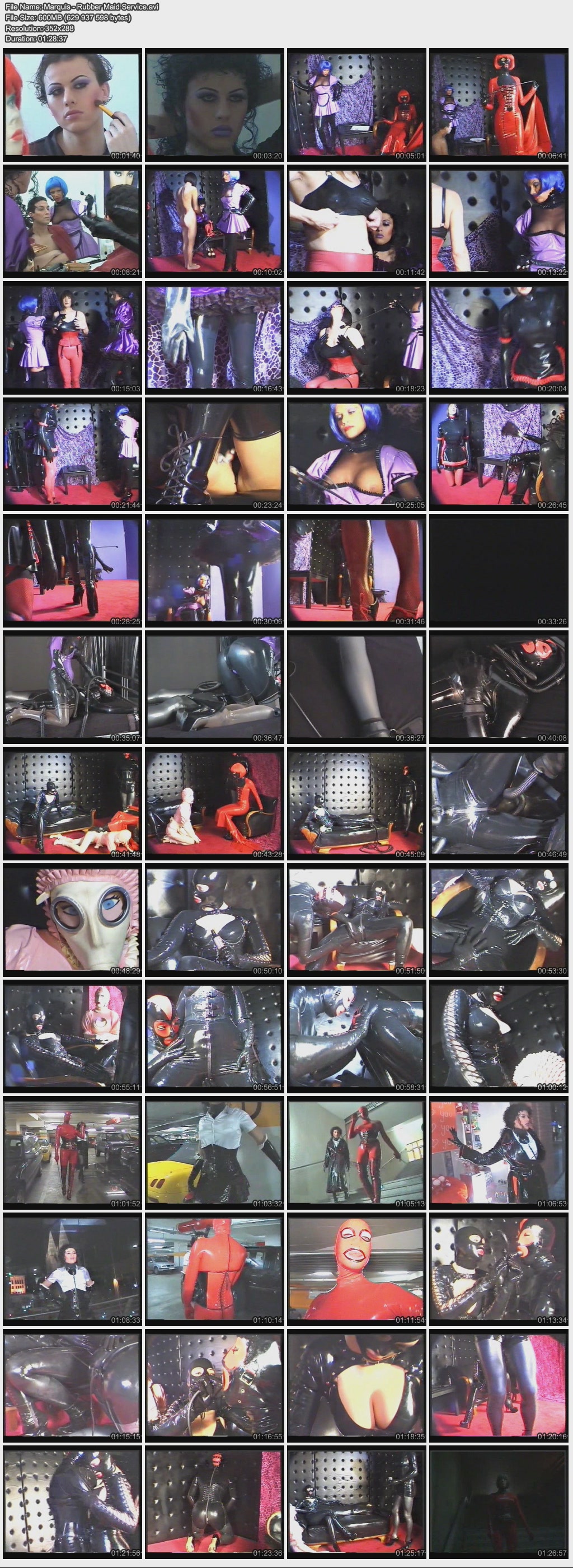 Название: Rubber Maid Service / Сервис резиновых горничных Год выпуска: 2000 Продолжительность: 01:28:37 В ролях: Toyra, Natasha, Keith S, Bizzare Gum, Guest Dominatrix, Sandra W, Bianca C. Описание: It is the dream of many fetishists to be feminized by an adoreable rubber goddess transformed into a sissy maid or perfect rubber doll. Many men carry this female part inside, but never let it happen. In our film, two of them can live it out to the max. Not only one, but three dominant latex ladies take care of them. Perfect make-up and wigs, corsets, high heels and lots and lots of tight rubber transform them competely - and they have to show it off in the public of a shopping mall! Мечтой многих фетишистов является превращение в женщину с помощью восхитительных одежд из резины, в сисястую горничную или первоклассную резиновую куклу. Многие мужчины держат их женскую половину внутри, поэтому с ними ничего подобного никогда не произойдёт. В нашем фильме, два из них смогут реализовать свою мечту по максимуму. Не одна, а целых три госпожи в латексе будут держать над ними шефство. Отличный макияж и парики, корсеты, туфли на шпильке и множество резиновых превращений - кроме того, они это покажут на публике в одном из огромных торговых центров! Качество: VHSRip Формат: AVI Видео: Xvid 352x288 25.00fps 621kbps Аудио: MPEG Audio Layer 3 44100Hz stereo 320kbps Размер: 600 mb Скачать:  Вам необходимо ЗАРЕГИСТРИРОВАТЬСЯ НА ФОРУМЕ, чтобы скачать файл.