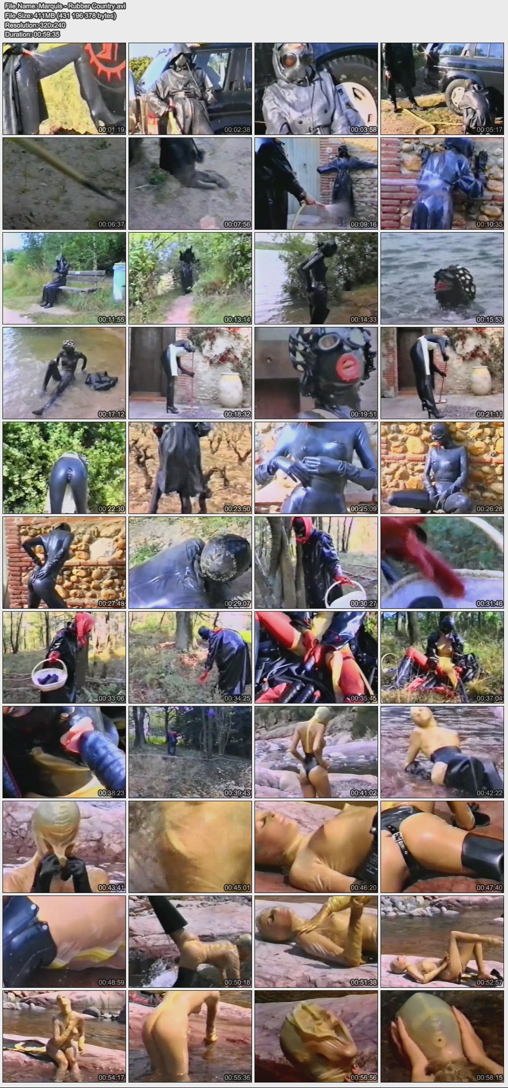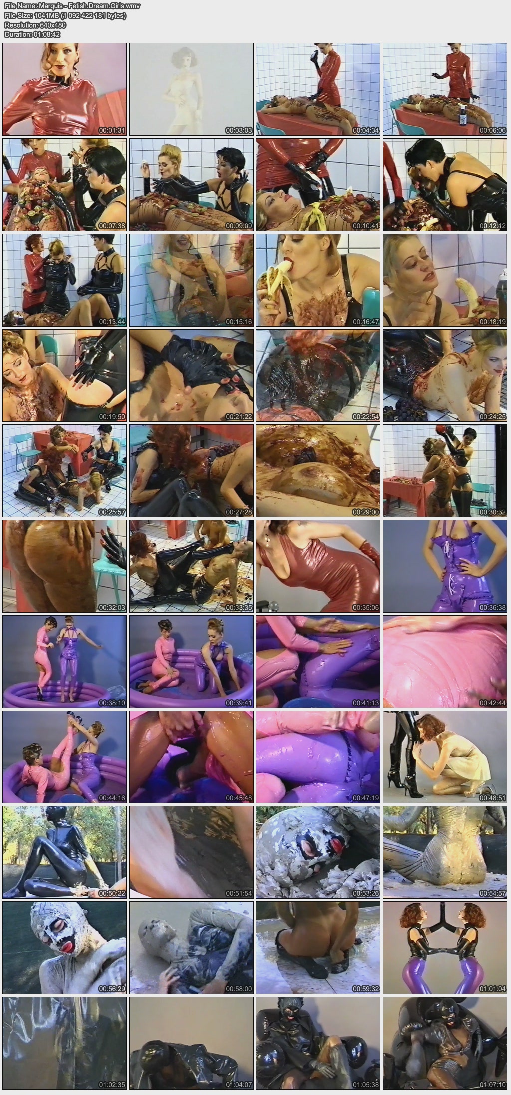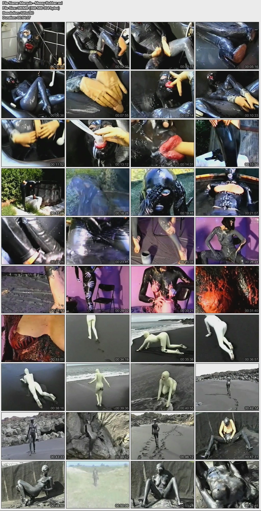 Название: Messy Rubber / Грязная резина Год выпуска: 2000 Продолжительность: 00:54:07 В ролях: Bianca, Nera, Sandra Описание: Liquid latex, Japanese slime, colourful latex paint, black mud – all kinds of muck and goo can be smeared over rubber outfits, as our sexy girls demonstrate. There are no inhibitions whatsoever, when you are fully and safely enclosed from head to toe… Жидкий латекс, японская глина, разноцветные латексные краски, чёрная муть - все типы грязи и грязюки могут быть намазаны на резиновые облечения, что показывают наши сексуальные крошки. Нет вообще никаких ограничений, когда ты полностью обмазан с головы до пят... Качество: VHSRip Формат: AVI Видео: Xvid 320x240 31.00fps 654kbps Аудио: MPEG Audio Layer 3 44100Hz stereo 320kbps Размер: 380 mb Скачать:  Вам необходимо ЗАРЕГИСТРИРОВАТЬСЯ НА ФОРУМЕ, чтобы скачать файл.