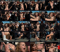 Руки Пэйтон Белл зафиксены за ее спиной,и ее водят в толпе на Ярмарке Фолсом-Стрит подбадривая разрядом в задницу из электрошокера. Люди ржут, держа дистанционное управление и лупя ей по жопе, в то время как она бьется тростью, шлепается, и ласкается. Затем она получает прищепки на песду прямо середине улицы. Прищепки, которыми управляют от вершины ее сисек полностью вниз к ее чувствительным губам киски. Одобрение толпы застежка-молния медленно разрываются от ее тела, и она кричит в шоке и боли. Наконец она вознаграждена сильным оргазмом и многократными xyйцами, чтобы их высосать и трахаться снова и снова! Наблюдайте и наслаждайтесь, поскольку Пэйтон реально преображается из милой девушки в жадную до xyёв подзаборную шалаву , как только попадает в рабство!
