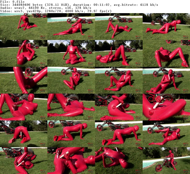 Описание: Busty & kinky Sandy got her body totally covered with some red latexwear only to go out to the garden & insert toys in her pussy & ass! The hot-blooded babe is really into latex fetish, and enjoys very much to get exposes & masturbate with her toys...
