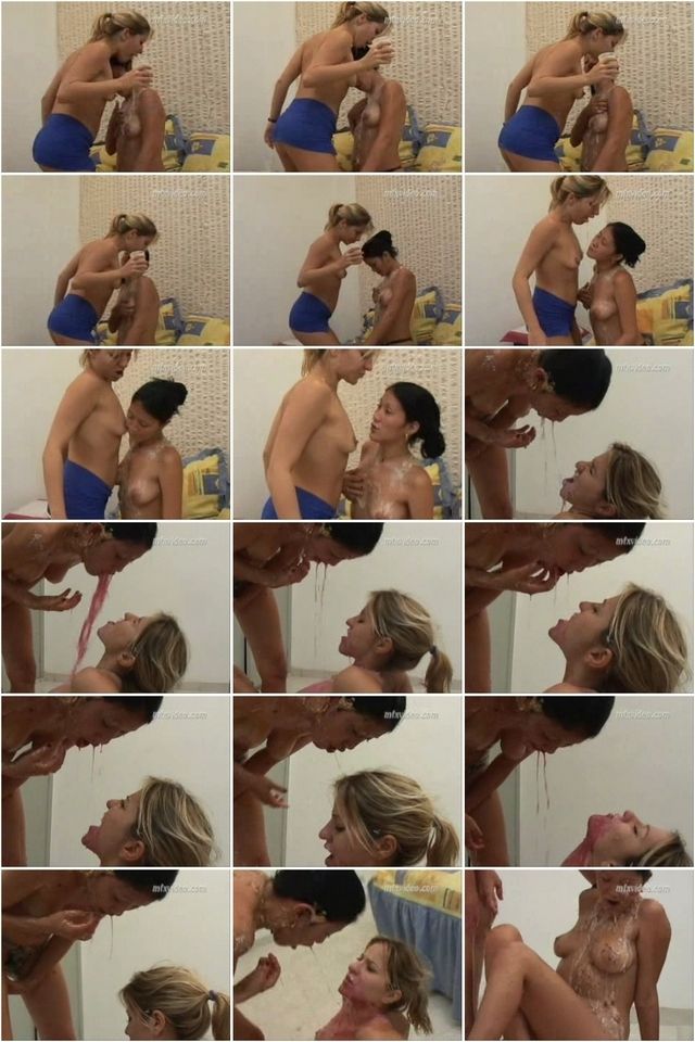 Групповая блевота девок красным борщем друг на друга