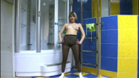 Русская девушка Milena занимается физкультурой в телесных колготках