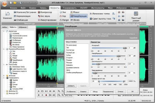 AVS Audio EditorПрофессиональный аудиоредактор, позволяющий вам редактировать, записывать и кодировать музыку. В программу встроено более 20 эффектов и фильтров, в том числе задержка, фленджер, хорус, реверберация, фильтры для удаления раздражающих звуков, таких как "vuvuzelas", рев болельщиков и т.д.