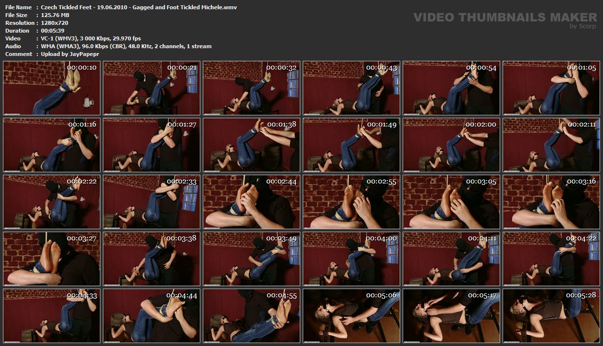 Czech Tickled Feet - 19.06.2010 - Gagged and Foot Tickled Michele.wmv Video: WMP v9 (VC-1 Simple/Main), 1280x720,, 3021 kbps, fps Audio: 0x0162 (Windows Media Audio 9 Professional), 48000Hz, 96 kbps CBR, 2 channel(s) Duration: 5:42.090 Size: 125,763 Mb Link: http://dfiles.ru/files/6ll78734j |  Вам необходимо ЗАРЕГИСТРИРОВАТЬСЯ НА ФОРУМЕ, чтобы скачать файл.