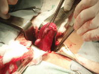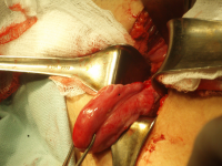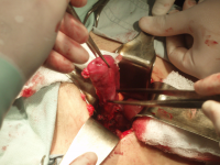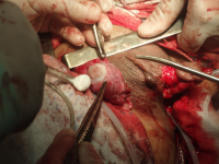3. Матка взята на держалку, острым и тупым путем матка выделена до шейки. (Видео 03 - файл mp4, 4,24 mb, 00-00-16)
