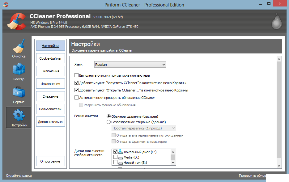 Еще одна полезная функция - полное стирание файлов. Еще CCleaner имеет функцию полного удаления файлов с диска с несколькими циклами перезаписи, что не позволяет восстановить их никаким способом.