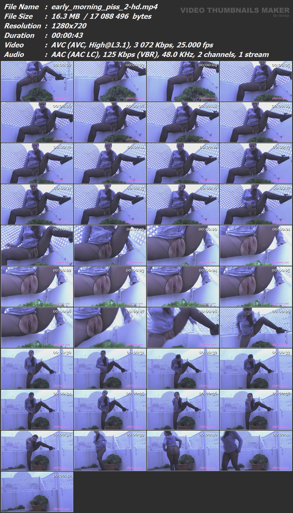 Early Morning Piss Part 2 Released: 2014 Length: 0 min. 42 sec. Starring: Salma de Nora Описание и Тех.характеристики видео смотреть в скрине.  Вам необходимо ЗАРЕГИСТРИРОВАТЬСЯ НА ФОРУМЕ, чтобы скачать файл.