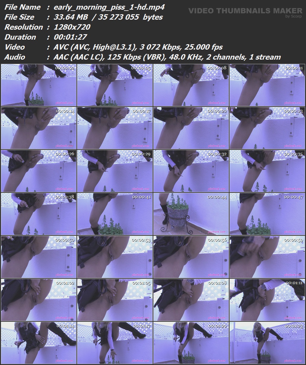 Early Morning Piss Part 1 Released: 2014 Length: 1 min. 27 sec. Starring: Ginger Описание и Тех.характеристики видео смотреть в скрине.  Вам необходимо ЗАРЕГИСТРИРОВАТЬСЯ НА ФОРУМЕ, чтобы скачать файл.