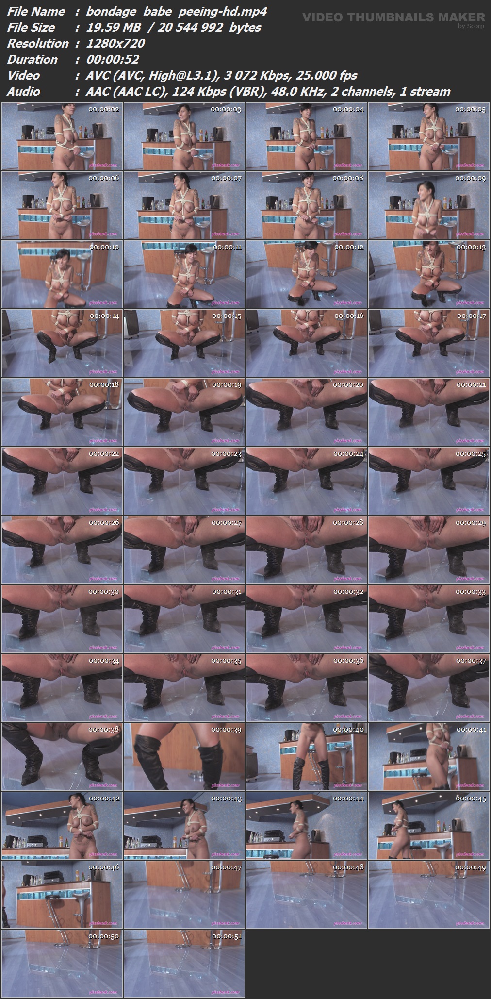 Bondage Babe peeing on the floor Released: 2014 Length: 0 min. 52 sec. Starring: Bella Описание и Тех.характеристики видео смотреть в скрине.  Вам необходимо ЗАРЕГИСТРИРОВАТЬСЯ НА ФОРУМЕ, чтобы скачать файл.