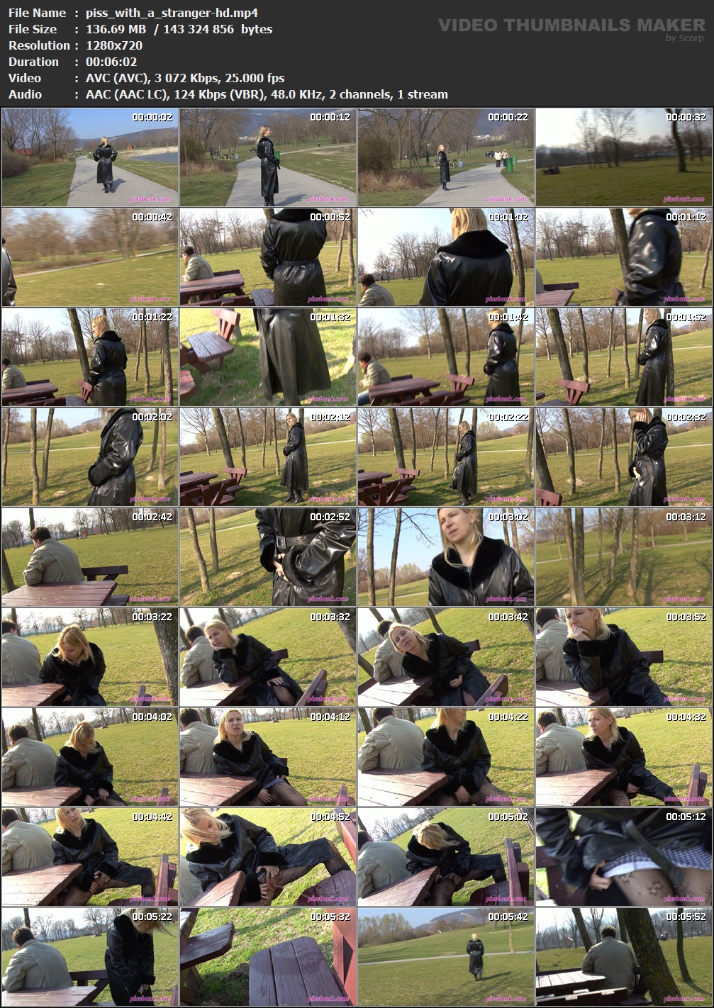 Pissing in the park Released: 2012 Length: 2 min. 28 sec. Starring: Cindy Описание и Тех.характеристики видео смотреть в скрине.  Вам необходимо ЗАРЕГИСТРИРОВАТЬСЯ НА ФОРУМЕ, чтобы скачать файл.