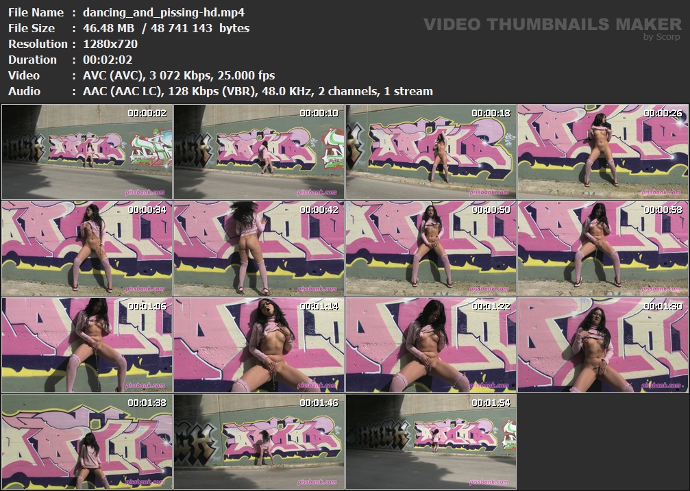 Dancing and Pissing in Public Released: 2012 Length: 2 min. 03 sec. Starring: Lucia Описание и Тех.характеристики видео смотреть в скрине.  Вам необходимо ЗАРЕГИСТРИРОВАТЬСЯ НА ФОРУМЕ, чтобы скачать файл.