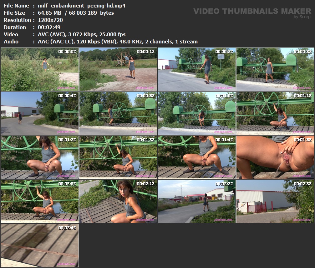 M.I.L.F. desperate peeing at the embankment Released: 2011 Length: 2 min. 50 sec. Starring: Andrea Описание и Тех.характеристики видео смотреть в скрине.  Вам необходимо ЗАРЕГИСТРИРОВАТЬСЯ НА ФОРУМЕ, чтобы скачать файл.
