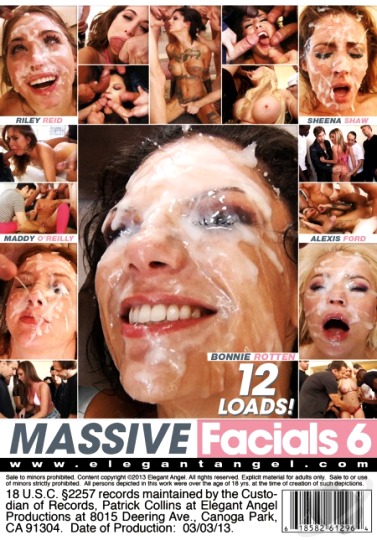Massive Facials 6 features the hottest pornstars pushing their boundaries! These very dirty girls get covered in cum for your viewing pleasure. Featuring Riley Reid with 6 loads, Maddy O'reilly with 10 loads, Sheena Shaw with 10 loads, Alexis Ford with 6 loads, and Bonnie Rotten with 12 loads! If you love cum facials it doesn't get any better than this. The award winning director Mason has put together a blowbang epic. Do not miss!