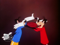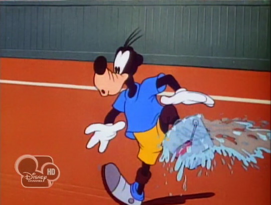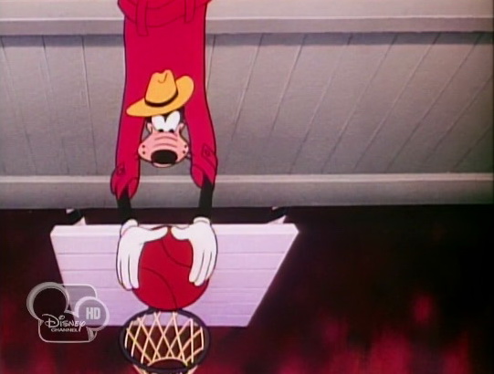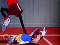 Гуфи на финальной игре по баскетболу среди колледжей ,оказывается единственным болельщиком команды гостей.