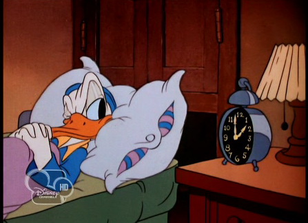 Дональд хочет рано лечь спать, чтобы рано встать, но громко тикающий будильник мешает ему.После нескольких попыток успокоиться Дональд проглатывает его.