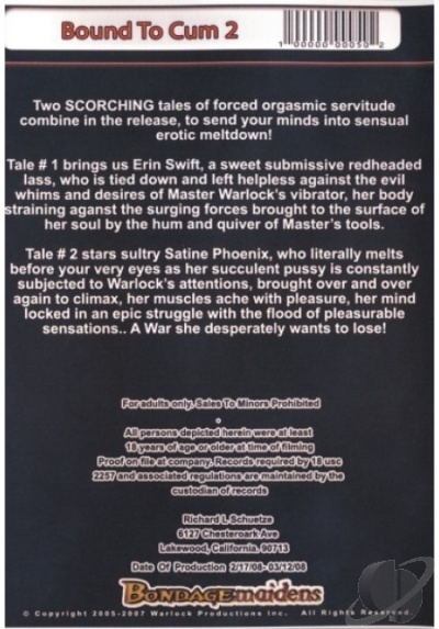 Описание: Two scorching tales of forced orgasmic servitude combine in the release, to send your minds into sensual erotic meltdown! Tale # 1 brings us Erin Swift, a sweet submissive redheaded lass, who is tied down and left helpless against the evil whims and desires of Master Warlocks vibrator, her body straining against the surging forces brought to the surface of her soul by the hum and quiver of Masters tools. tale #2 stars sultry Satine Phoenix, who literally melts before your very eyes as her succulent pussy is constantly subjected to Warlocks attentions, brought over and over again to climax, her muscles ache with pleasure, her mind locked in an epic struggle with the flood of pleasurable sensations A war she desperately wants to lose!