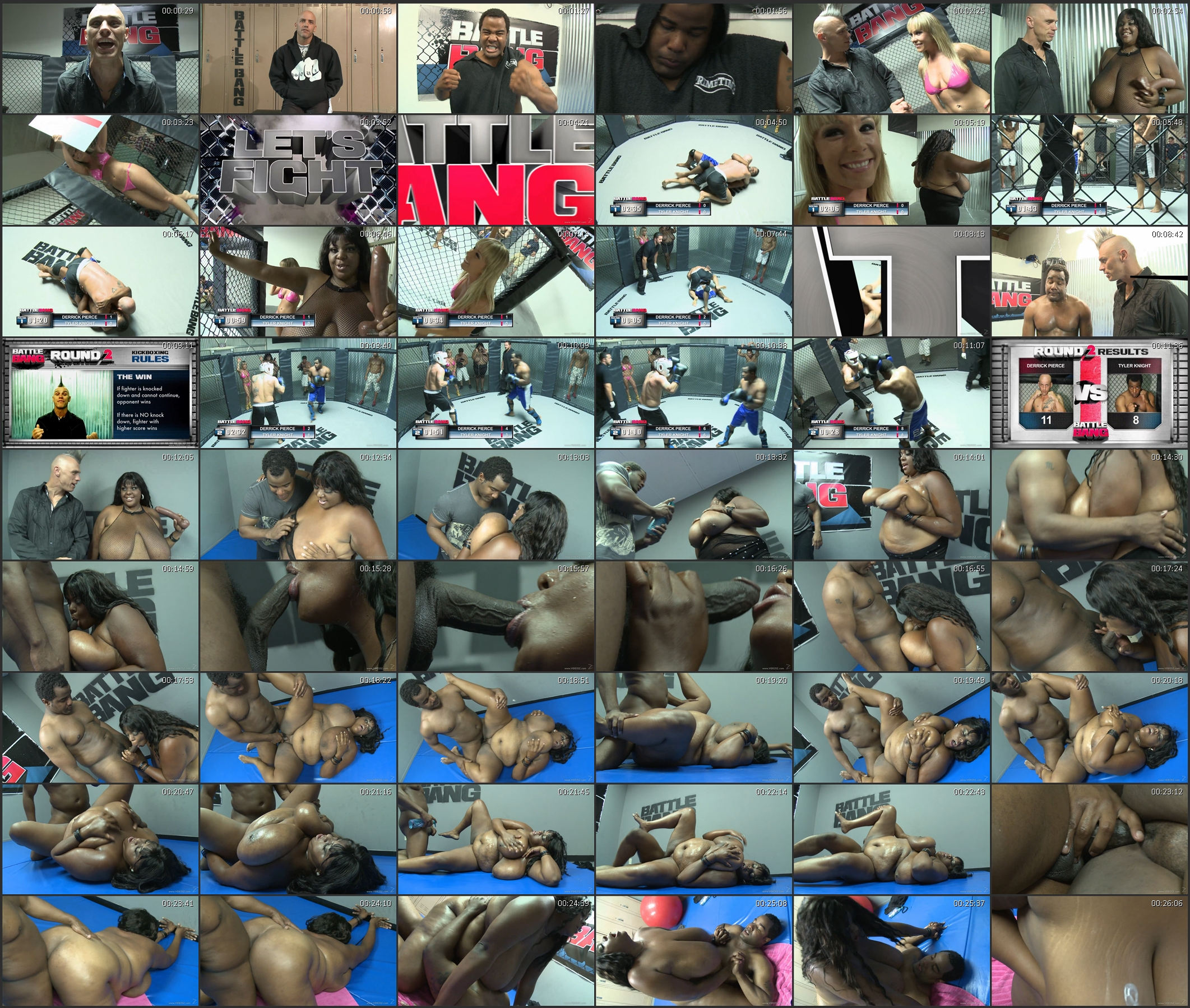 You've probably watch many men or woman cage fighting but, I guarantee you've never seen it like this! Here's your second addition to this Battle Bang series and it begins with a gorgeous blonde being slammed to the canvass sending her big boobs bouncing. You'll also see an interracial couple that gets his cock sucked after fucking his partner!