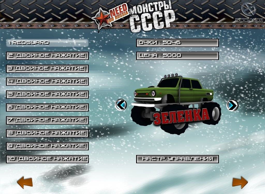 Описание игры: Очень не просто стать настоящими дорожными монстрами. Благодаря Need for Russia: Монстры СССР такая возможность становиться реальностью. Удобнее садитесь за руль знакомых автомобилей и быстрее покоряйте новые вершины. Отечественные автомобили готовы предстать перед игроком в новом образе. Задача опасна и трудна - потребуется обогнать соперников в интереснейшей гонке по пересеченной местности. Только истинный охотник сможет стать настоящим водителем истинного российского монстра. Готовы ли Вы стать непобедимым чемпионом?