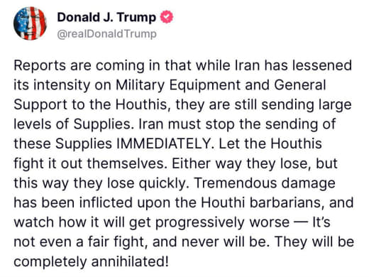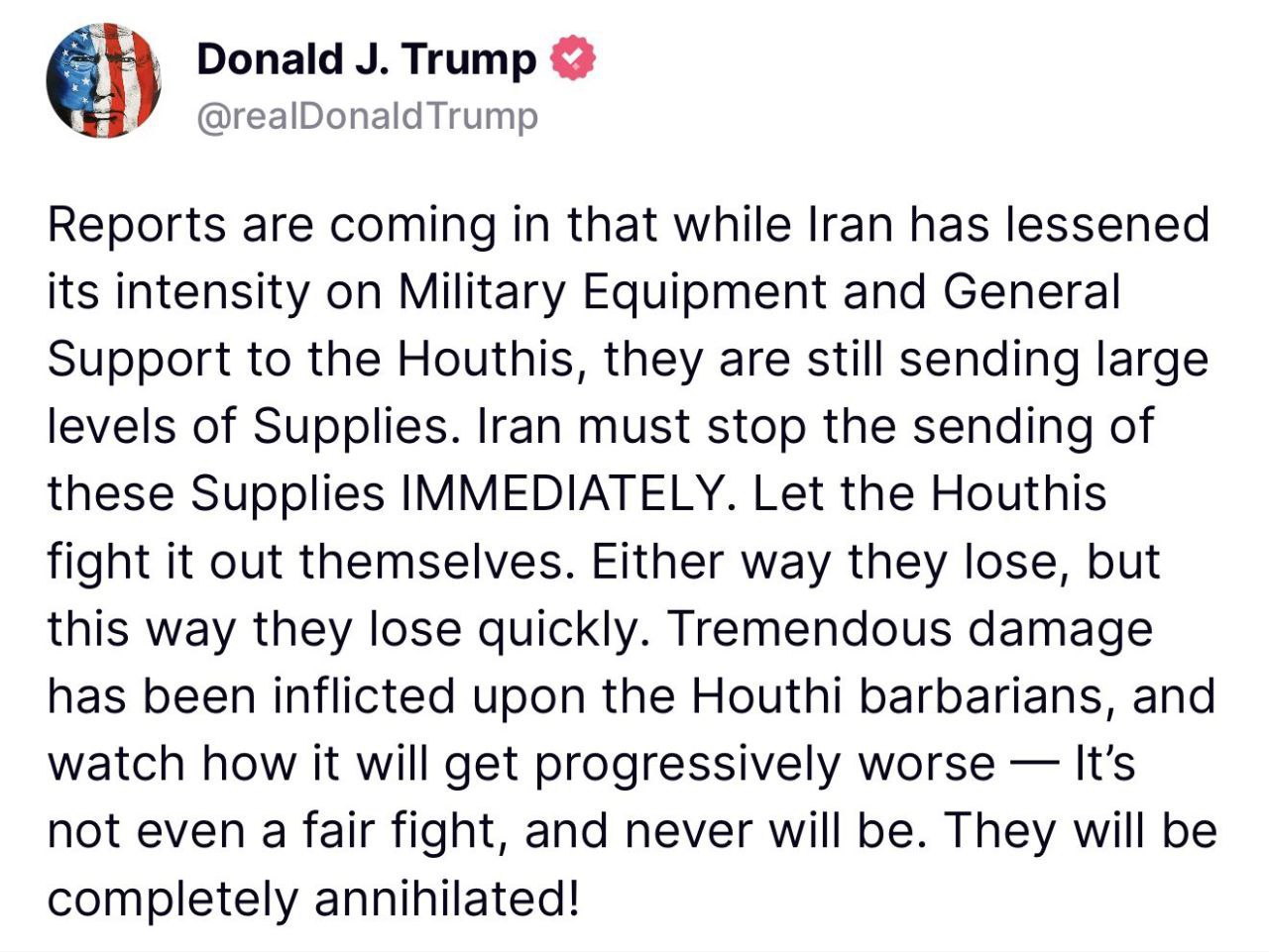 «Мы установили большие тарифы для Европы. Они сядут за стол переговоров. Они хотят поговорить, но разговора не будет, пока они не заплатят нам много денег на ежегодной основе - не только за настоящее, но и за прошлое»