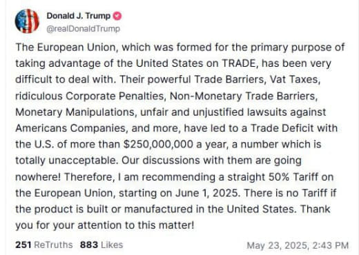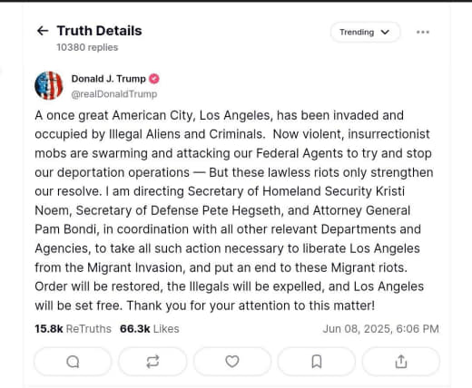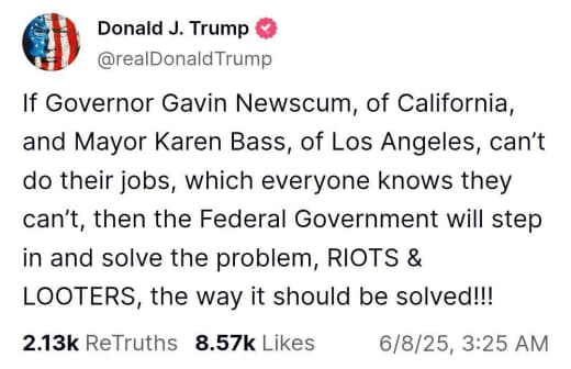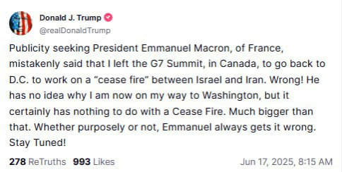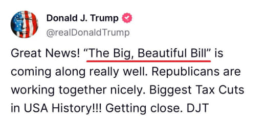 «Для меня большая честь объявить, что я установлю две прекрасные флагштоки по обеим сторонам Белого дома — на северной и южной лужайках. Это подарок от меня — того, чего всегда не хватало этому великолепному месту. Работы по рытью и установке флагштоков начнутся завтра в 7:30 утра по восточному времени. Флаги будут подняты примерно в 11:00. Это самые великолепные флагштоки — высокие, сужающиеся к верху, нержавеющие, с верёвкой внутри и высочайшего качества. Надеюсь, они будут с гордостью стоять по обе стороны Белого дома ещё долгие годы!», — Трамп