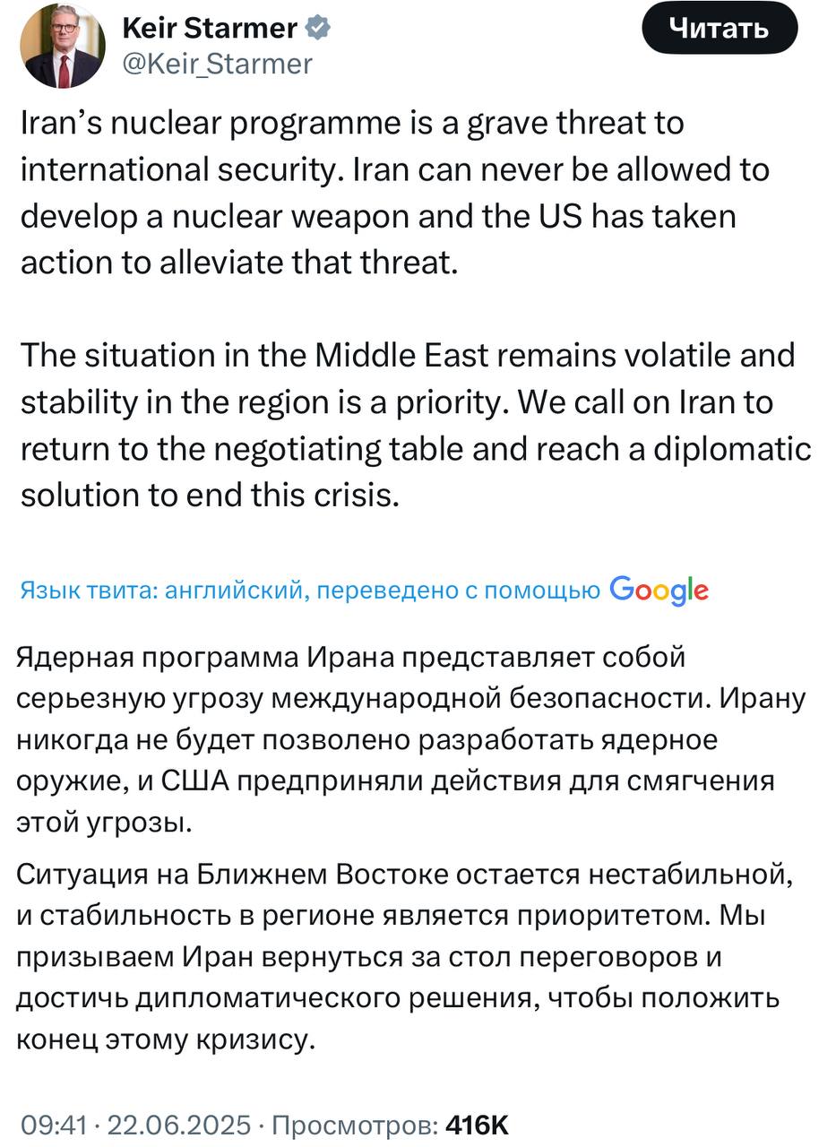 Мы сомневаемся, что прекращение огня [между Ираном и Израилем] продлится долго, и мы готовы к любым результатам.
